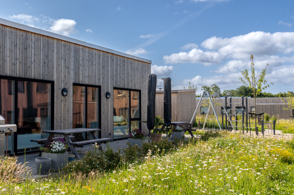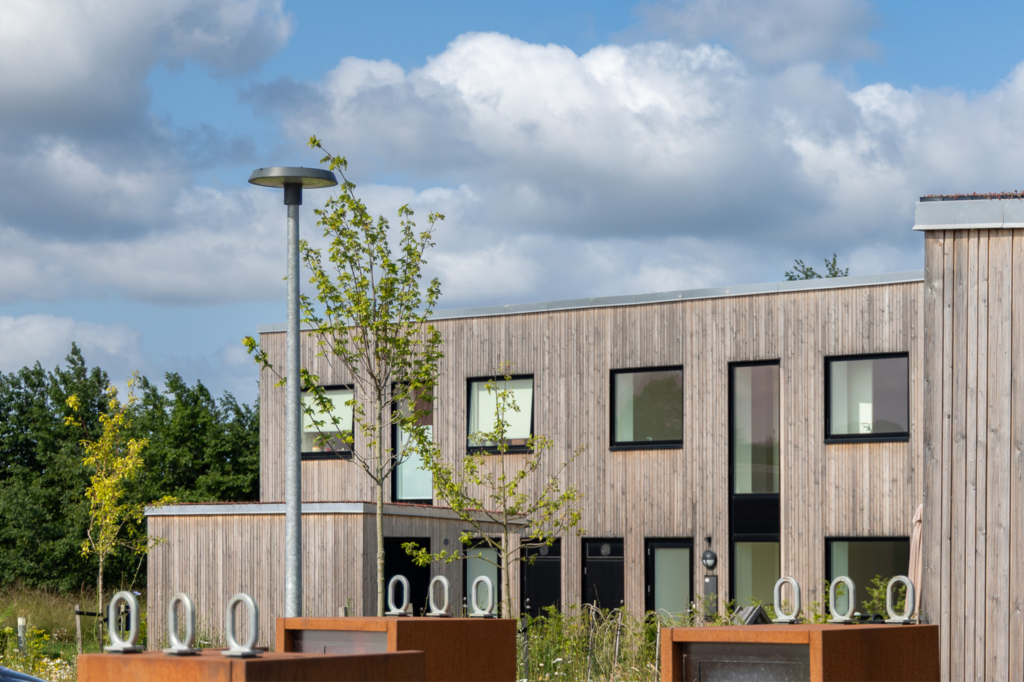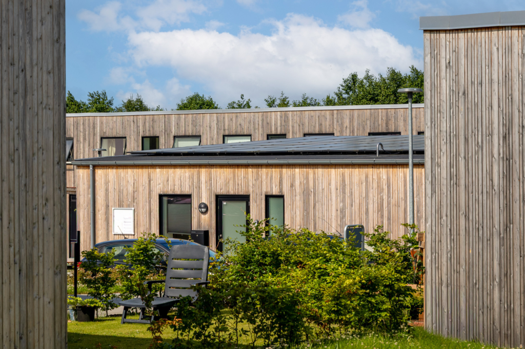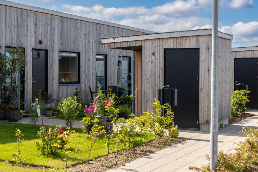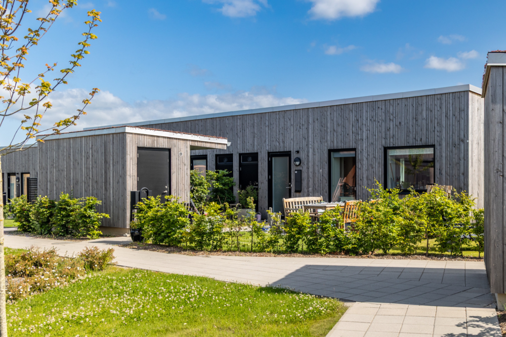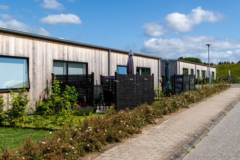 Boligerne er dejlige rækkehuse i 1 til 1,5 plan, der byder på tre forskellige boligtyper med 2- og 3-rums fordelinger. I hjertet af boligområdet finder du grønne arealer og det charmerende fælleshus, der rummer et fælleslokale til omkring 50 personer samt et gæsteværelse. Som prikken over i’et er der etableret fælles ladestandere for afdelingens beboere.